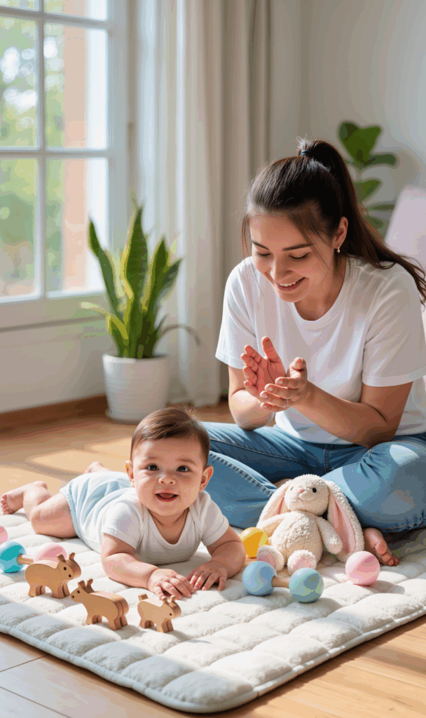 Tummy time has become one of our favorite parts of the day. I spread out a soft blanket, place a few colorful toys nearby, and cheer him on as he lifts his head higher than the day before. His tiny arms push against the floor, his legs kick like he’s trying to crawl, and his determination makes me laugh and tear up all at once.